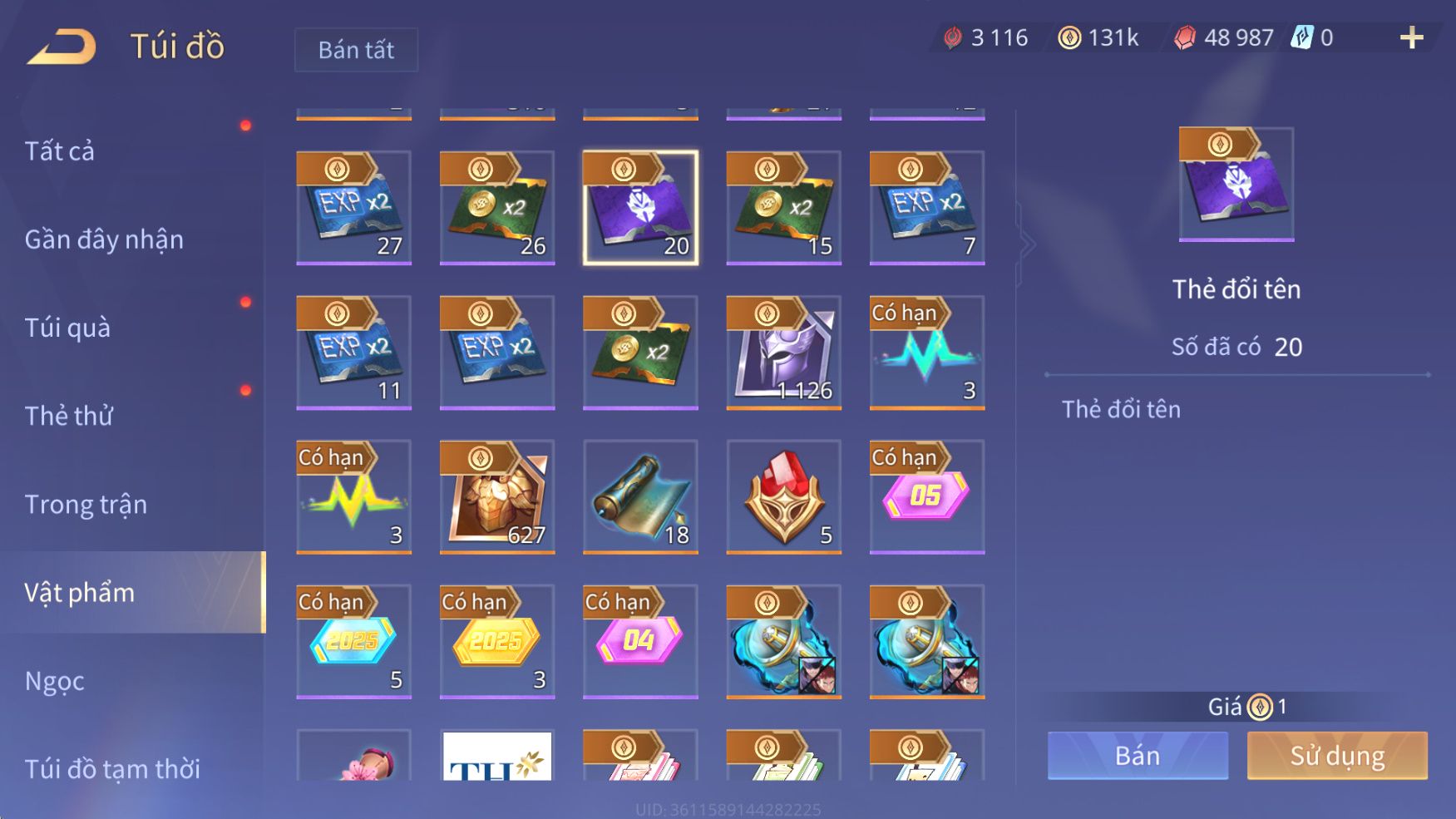 Nổi bật: Rất Nhiều Skin Đẹp Vip.Ngọc 90.Dư 131K Vàng.Dư 5 Đá Quý.Murad Siêu Việt.Nak Siêu Việt.Valhein Xạ Thần.Butterfly Bình Minh Tận Thế.Laville Kim Quy Thần Vương.Allain Lân Sư Vũ Thần.Omega Hộ Vệ Carano...