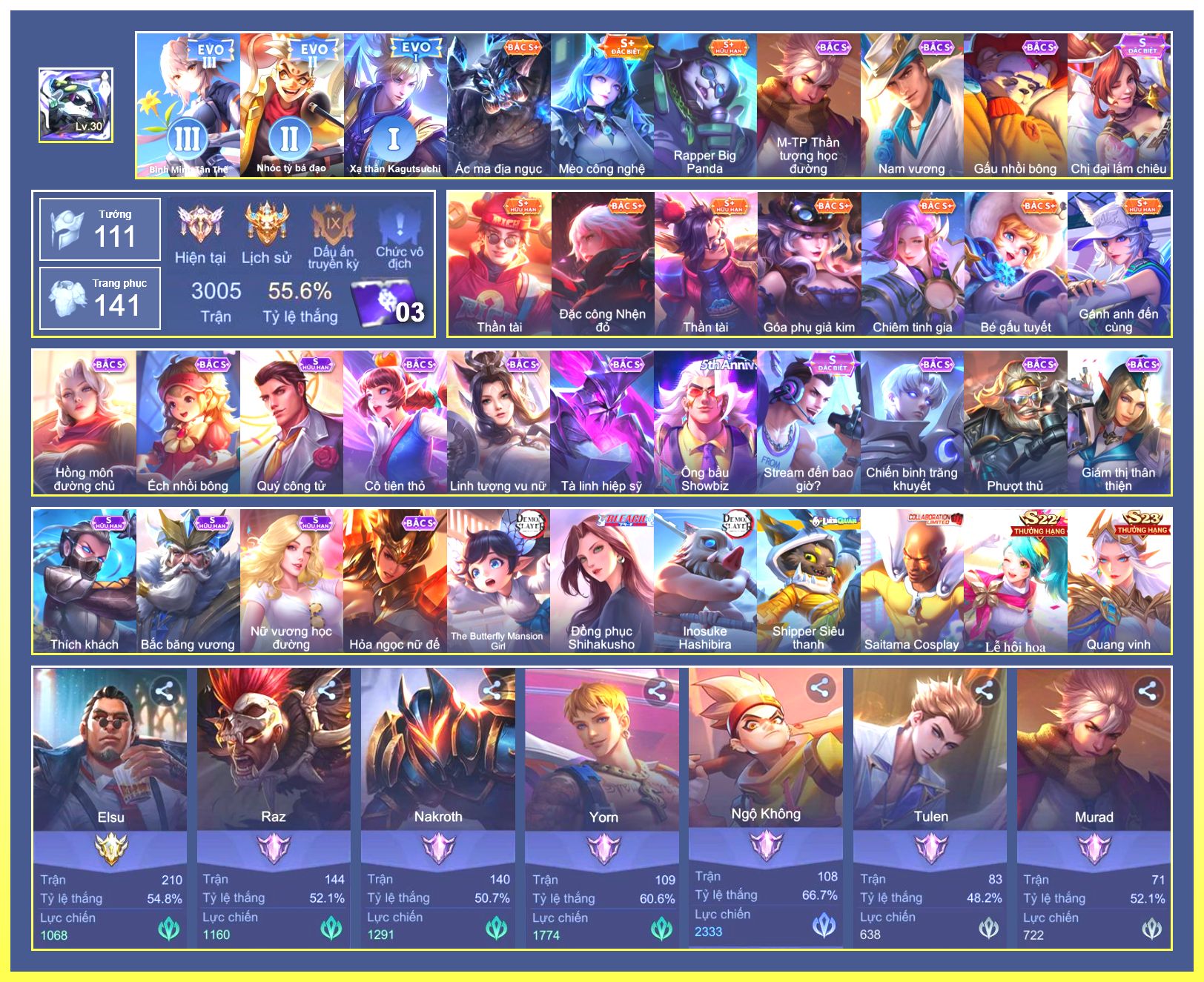 Rất Nhiều Skin Đẹp Vip.Ngọc 90.Dư 6...