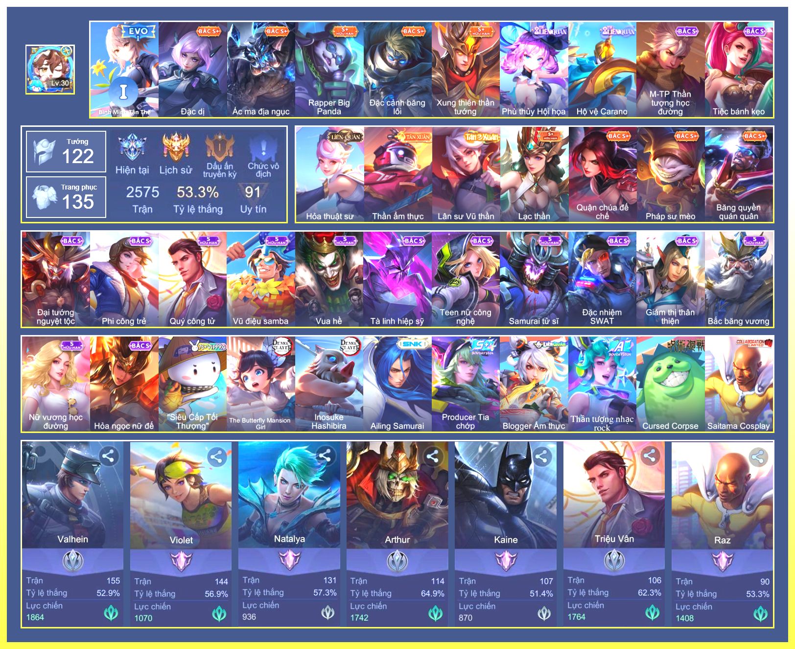 Rất Nhiều Skin Đẹp Vip.Ngọc 90.Dư 3...