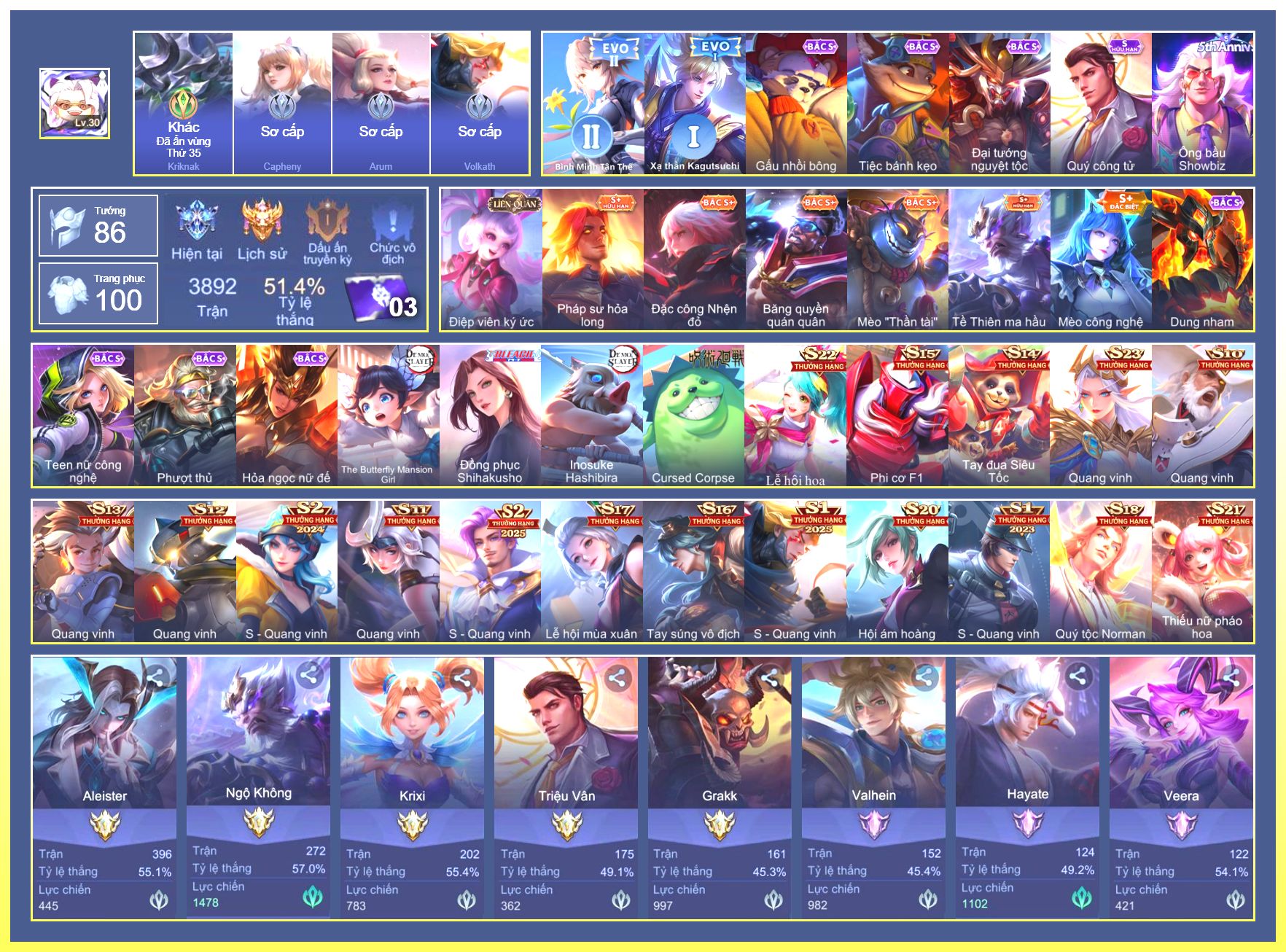 Rất Nhiều Skin Đẹp Vip.Ngọc 90.Dư 3...