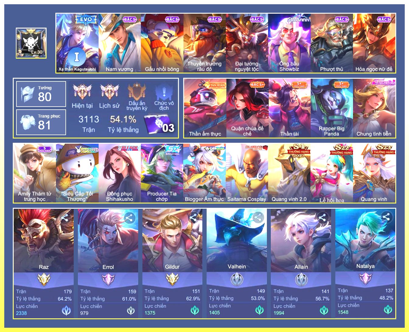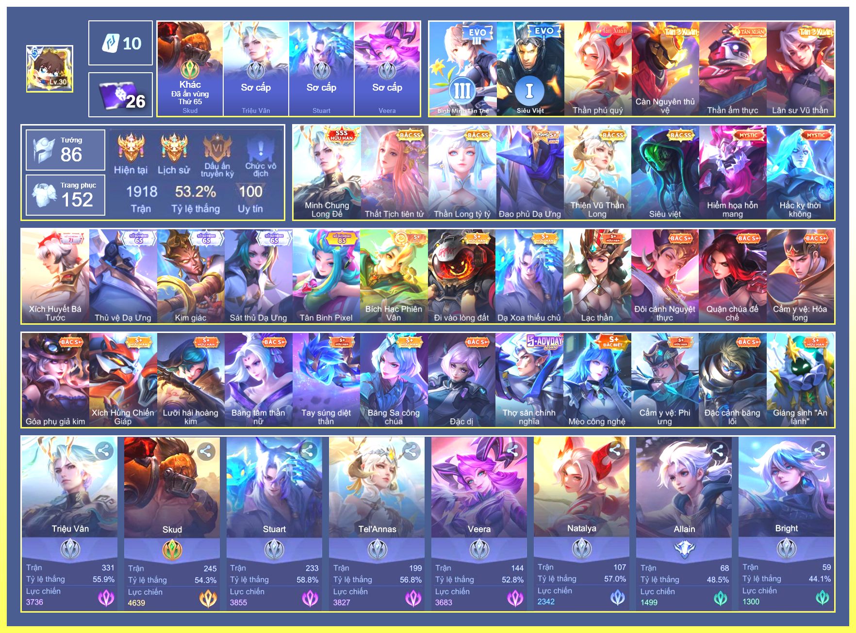 Rất Nhiều Skin Đẹp Vip.Ngọc 90.Dư 6...