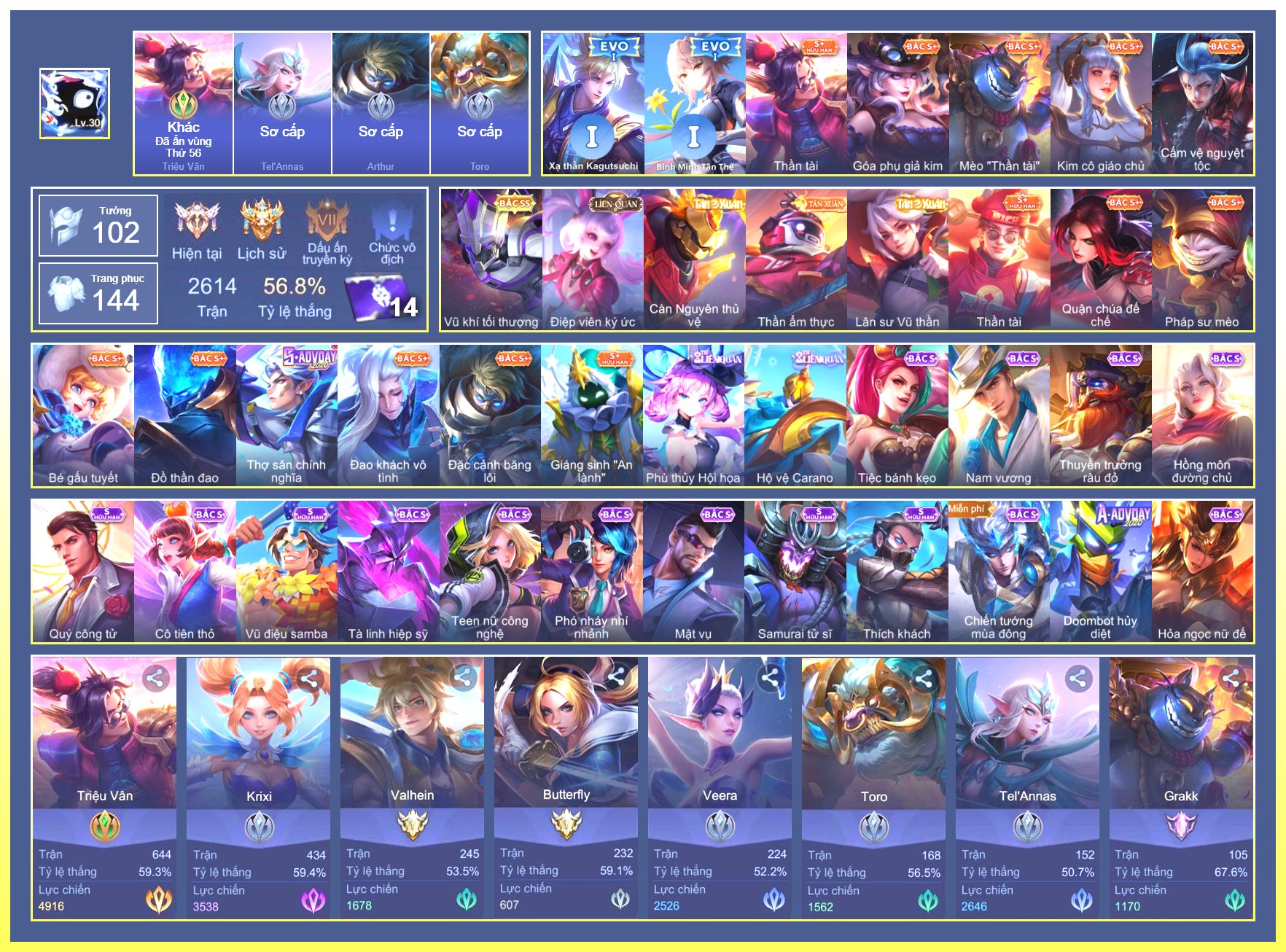 Rất Nhiều Skin Đẹp Vip.Ngọc 90.Malo...