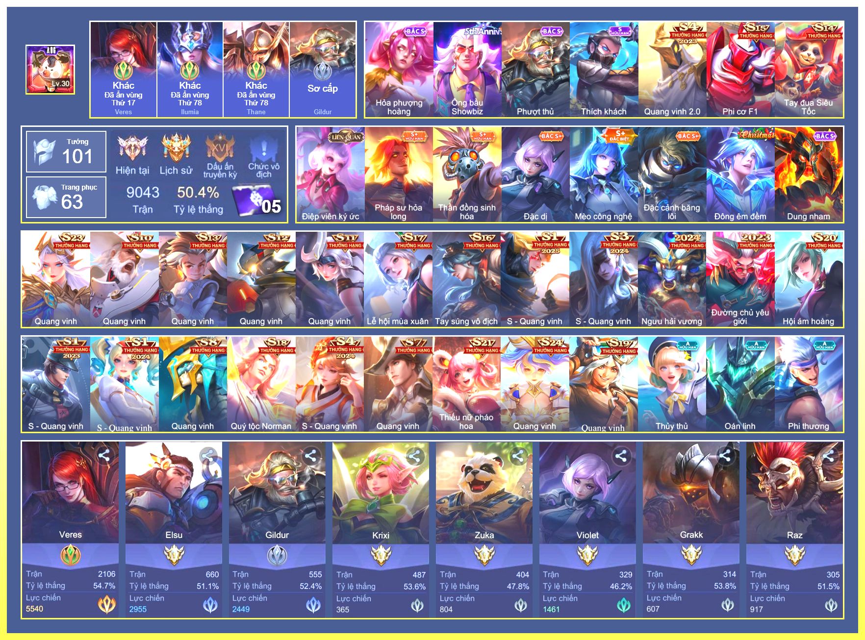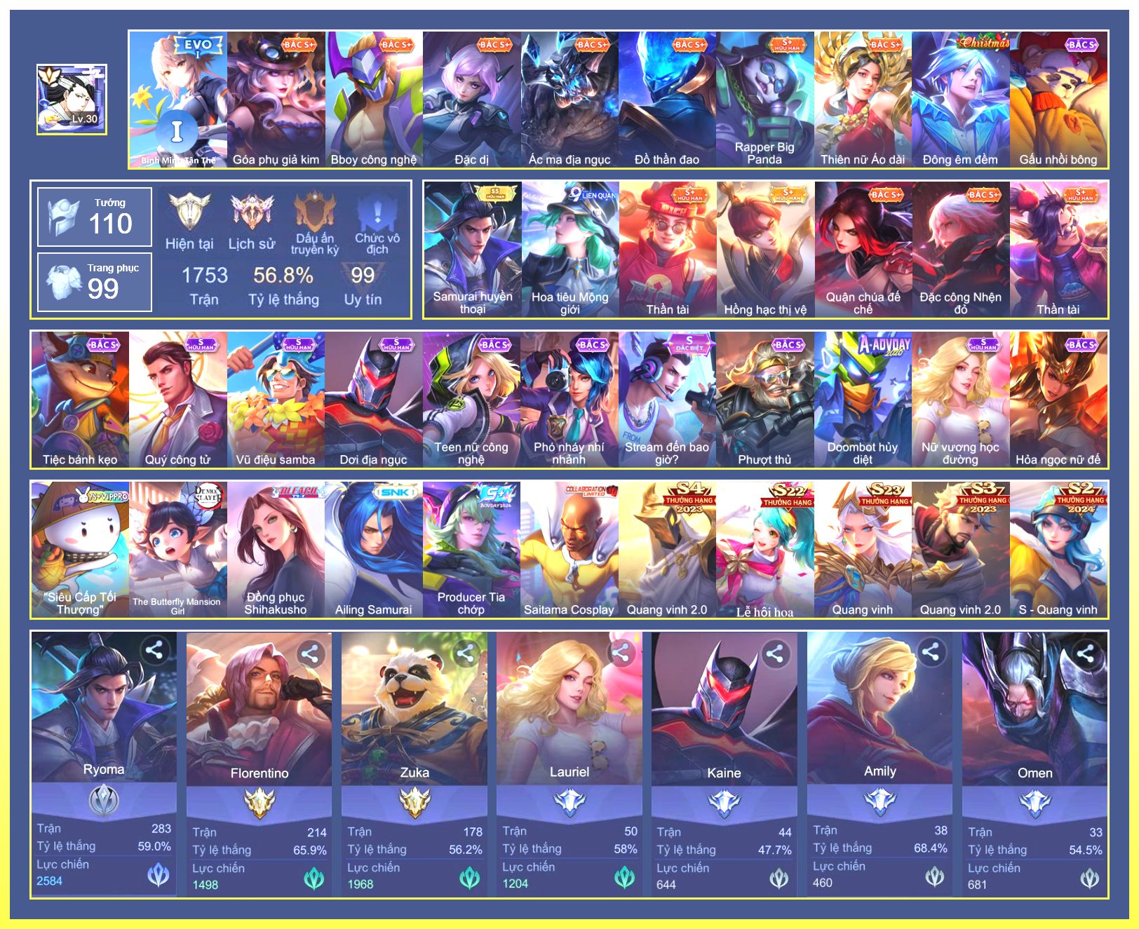Rất Nhiều Skin Đẹp Vip.Ngọc 90.Dư 3...