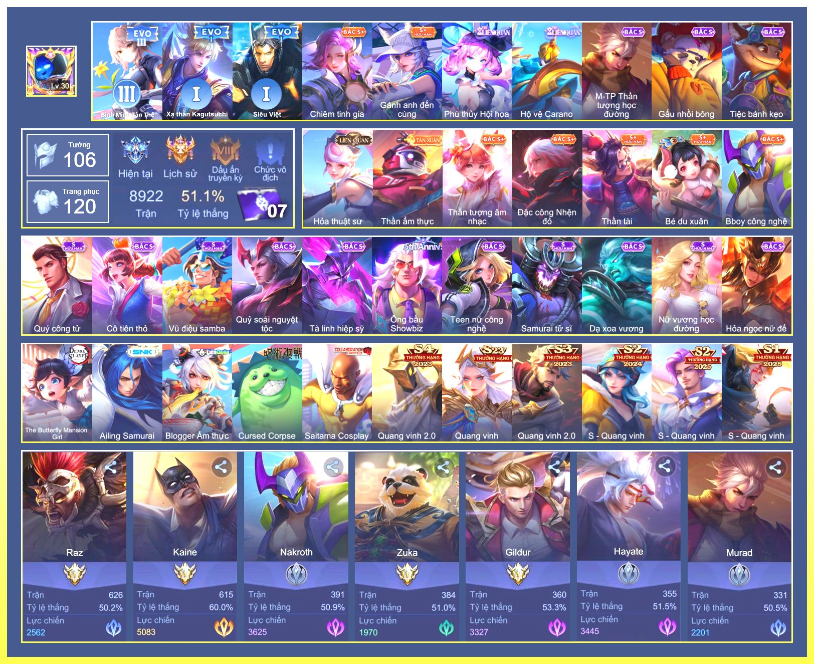Rất Nhiều Skin Đẹp Vip.Ngọc 90.Dư 5...