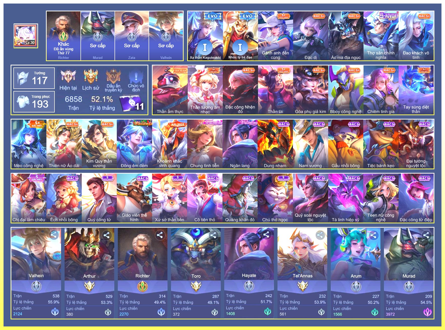Rất Nhiều Skin Đẹp Vip.Ngọc 90.Dư 4...