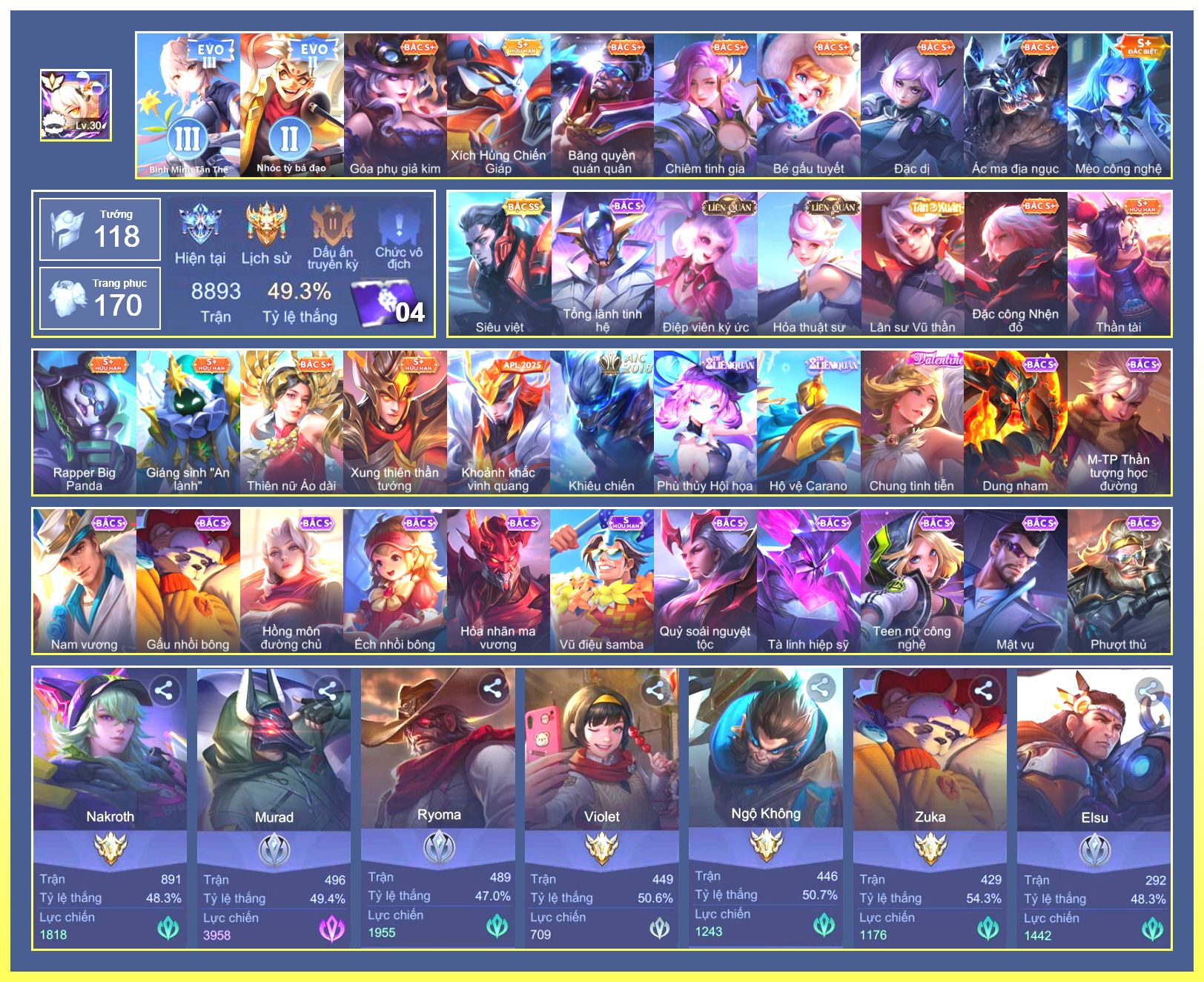 Rất Nhiều Skin Đẹp Vip.Ngọc 90.Điêu...