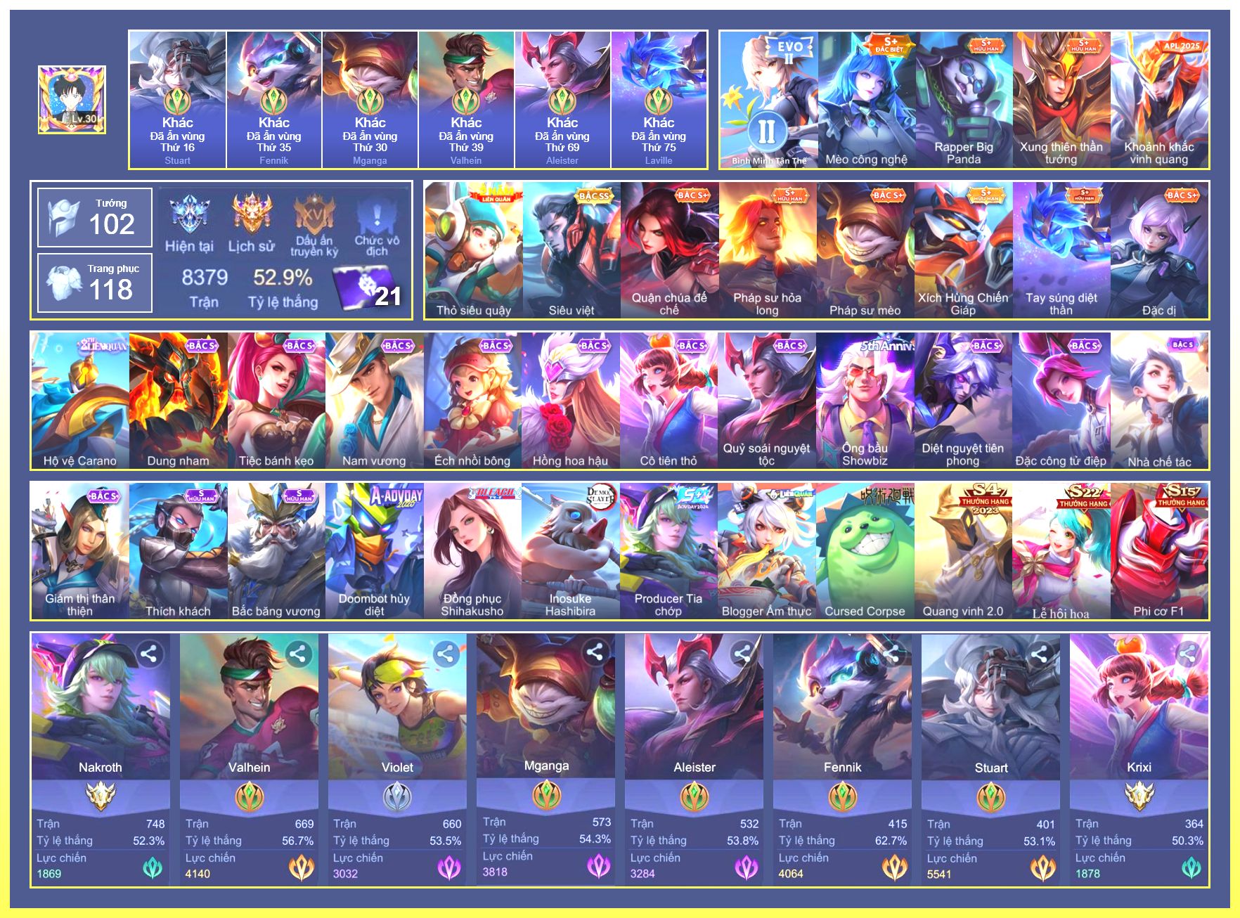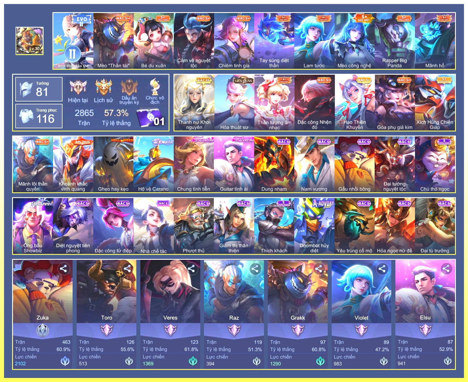 Rất Nhiều Skin Đẹp Vip.Ngọc 90.Dư 5...