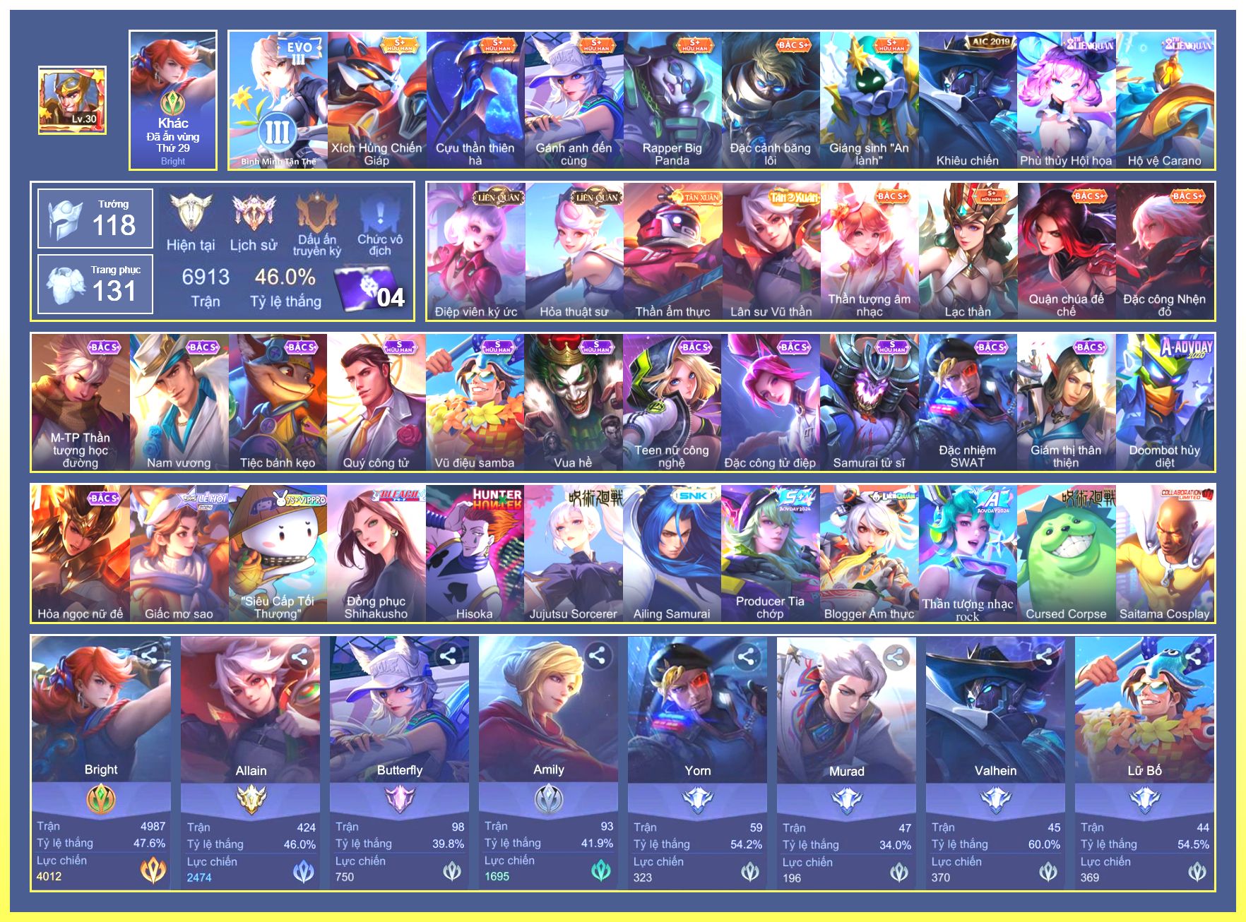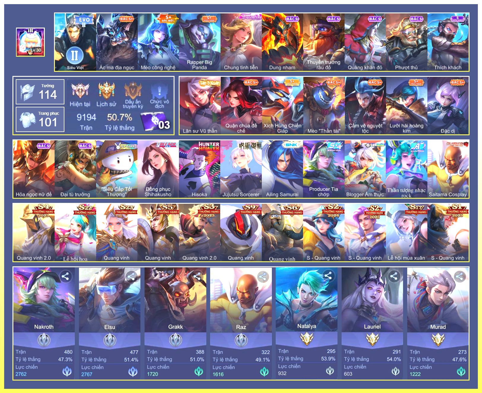 Rất Nhiều Skin Đẹp Vip.Ngọc 90.Dư 7...