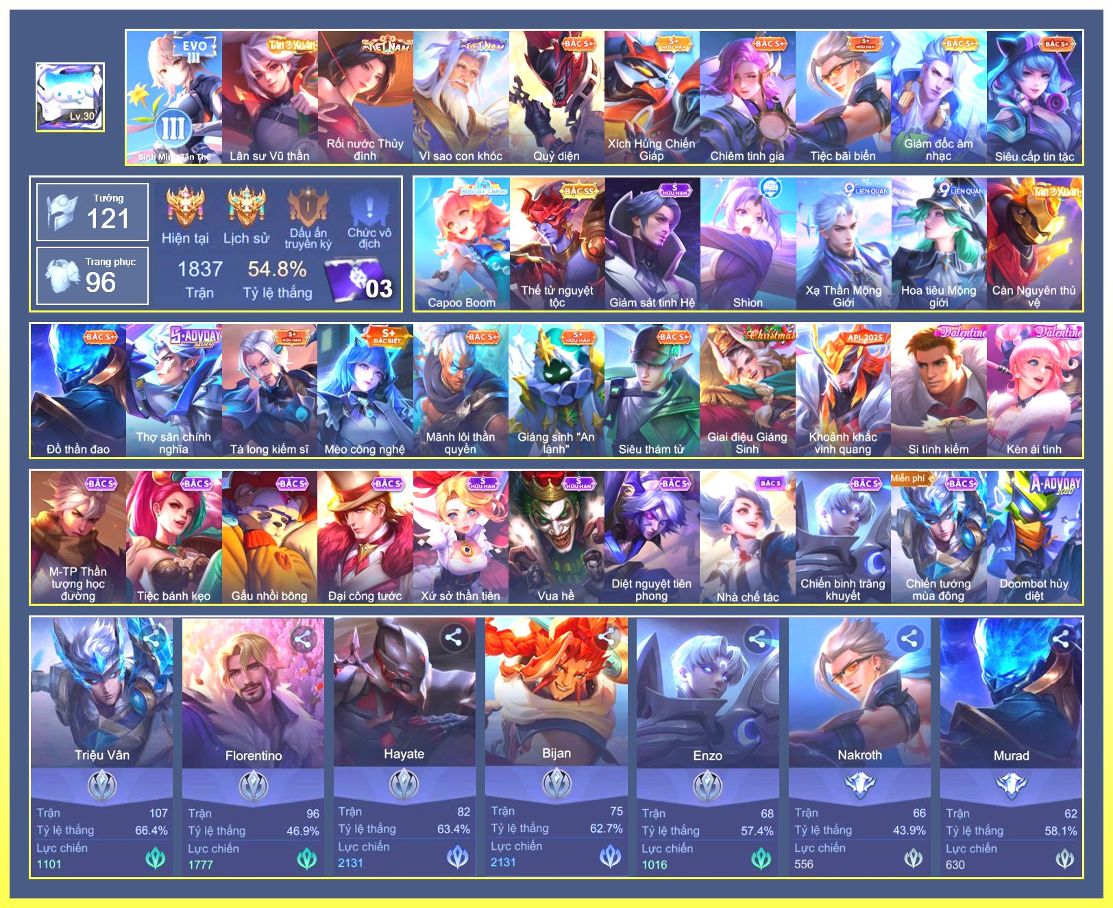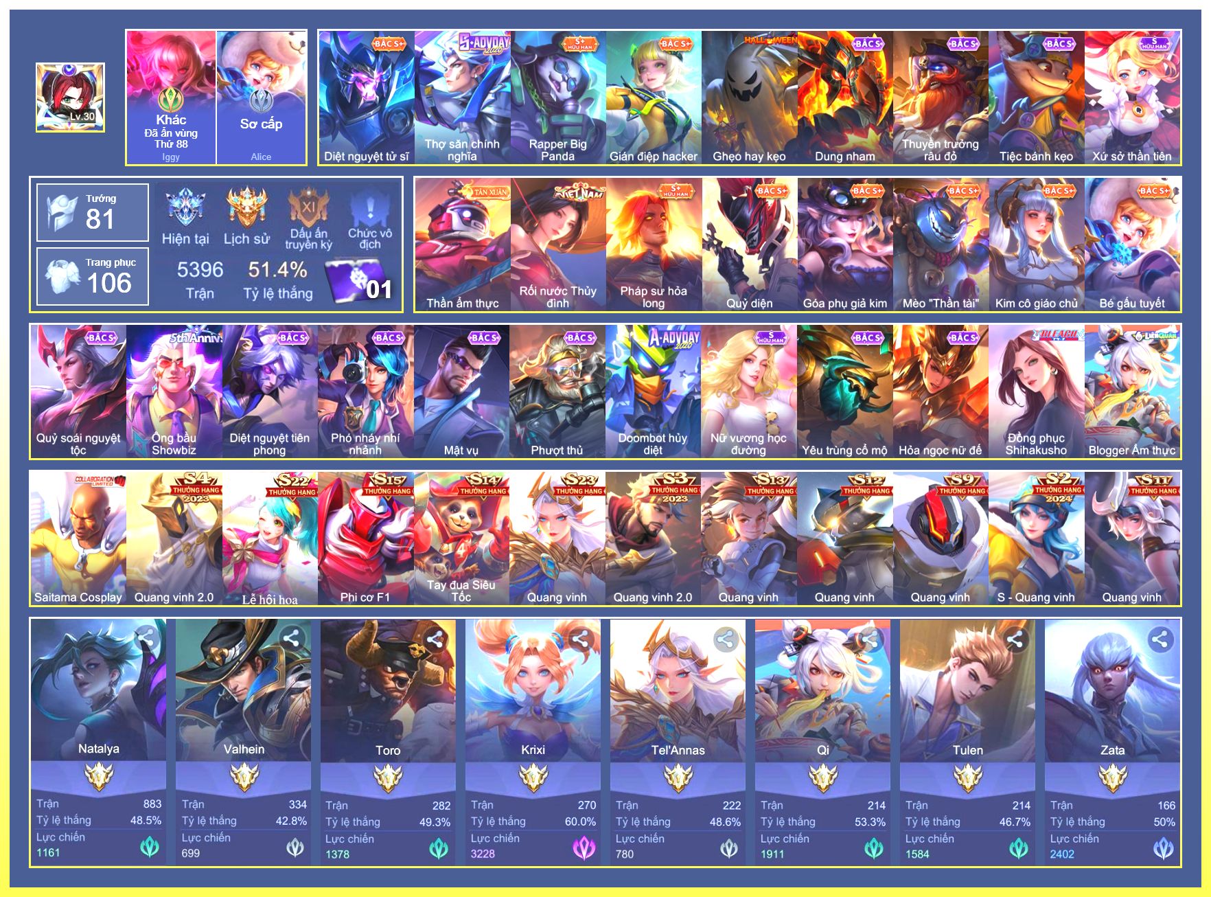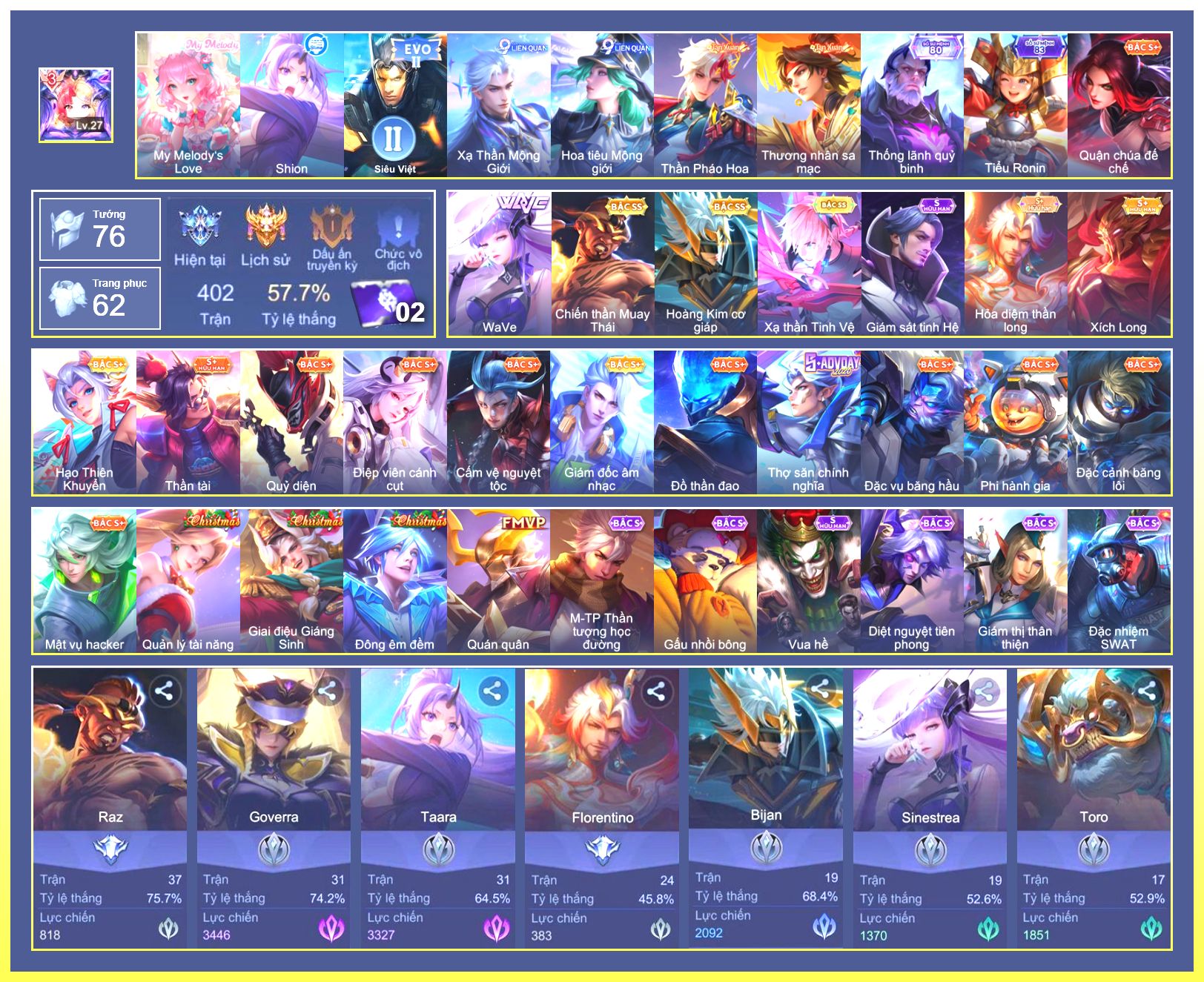 Rất Nhiều Skin Đẹp Vip.Ngọc 90.Dư 7...