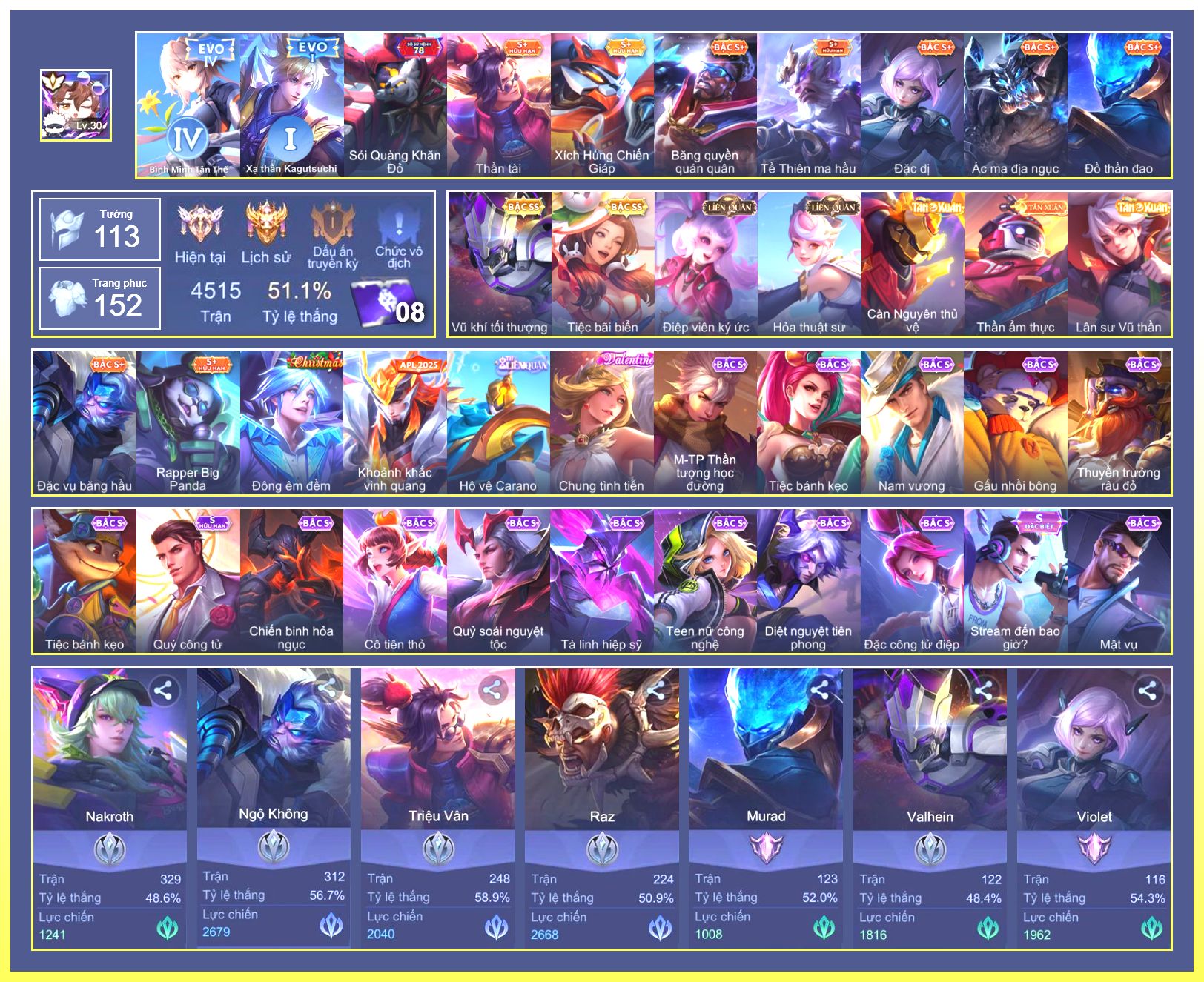 Rất Nhiều Skin Đẹp Vip.Ngọc 90.Dư 4...