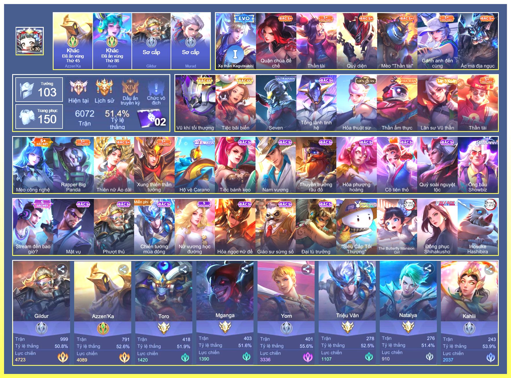 Full Tướng.Full Ngọc.Dư 163K Vàng.D...