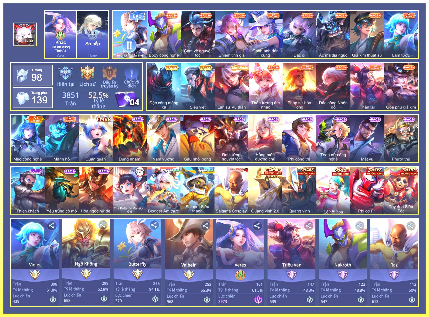 Rất Nhiều Skin Đẹp Vip.Ngọc 90.Dư 6...