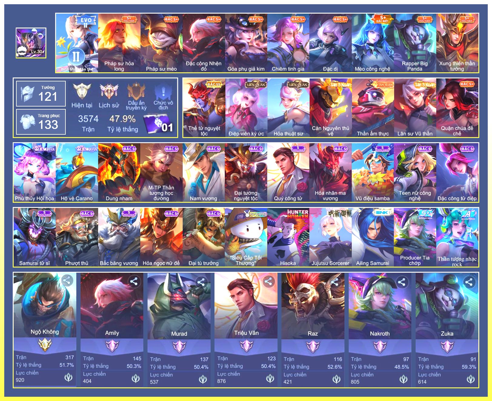 Rất Nhiều Skin Đẹp Vip.Ngọc 90.Malo...