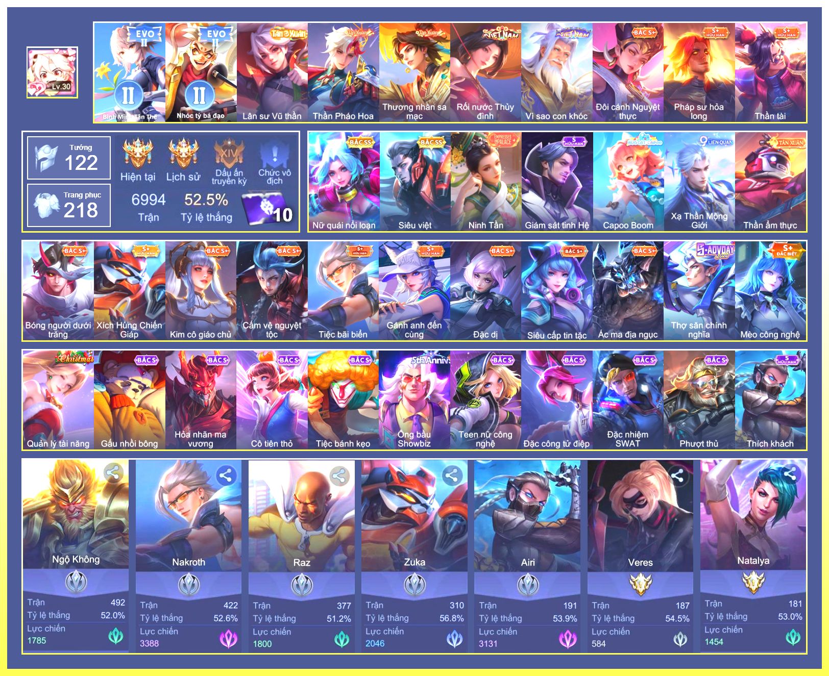 Rất Nhiều Skin Đẹp Vip.Ngọc 90.Malo...