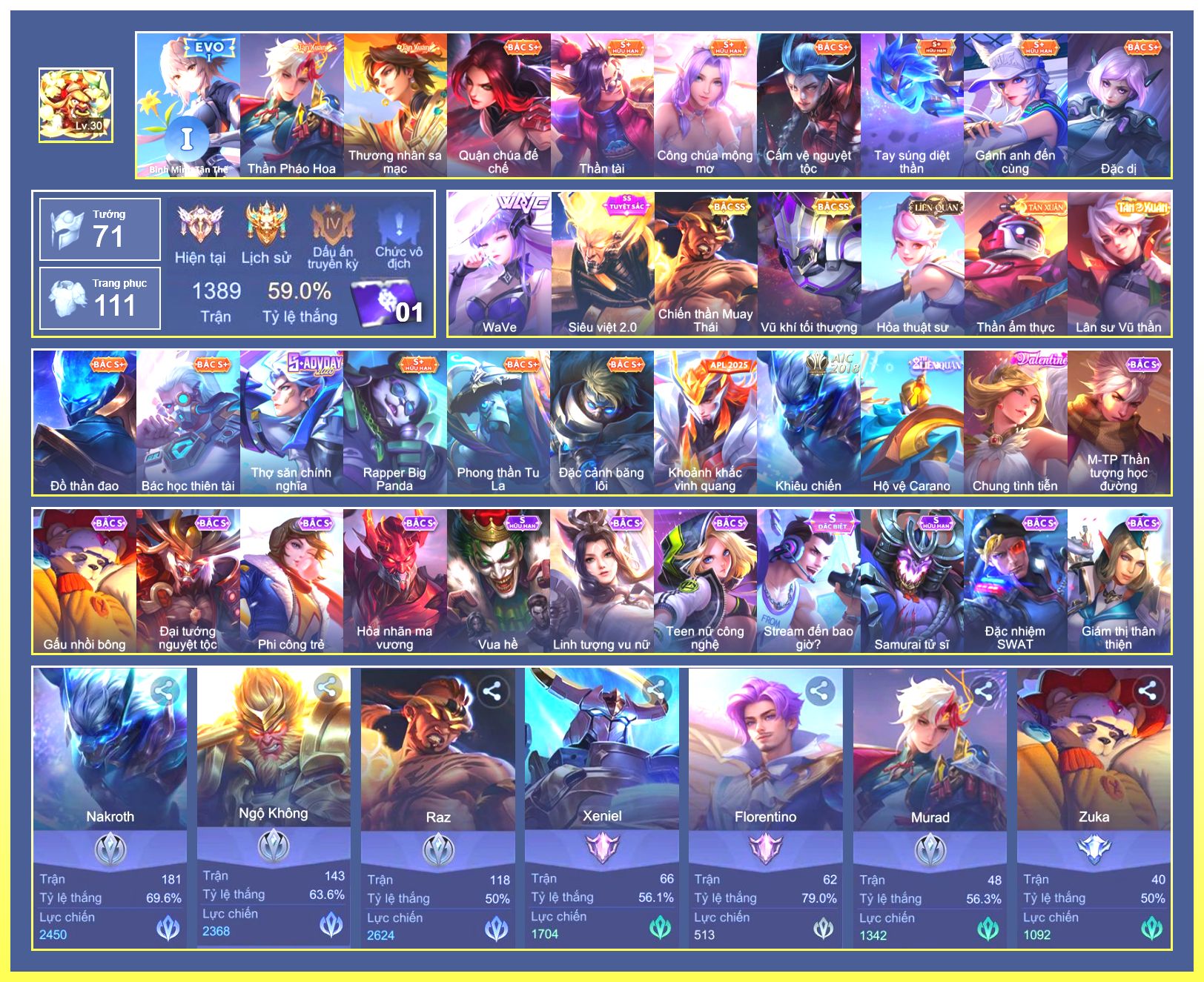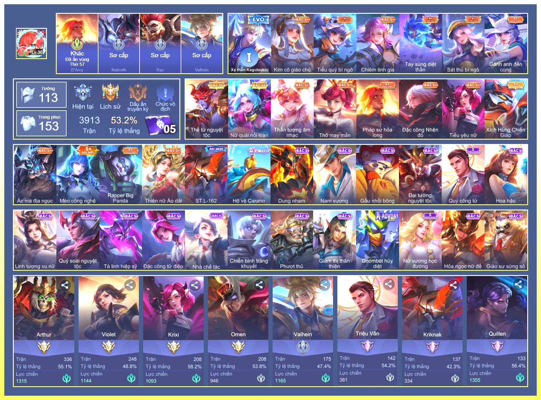 Rất Nhiều Skin Đẹp Vip.Ngọc 90.Dư 5...