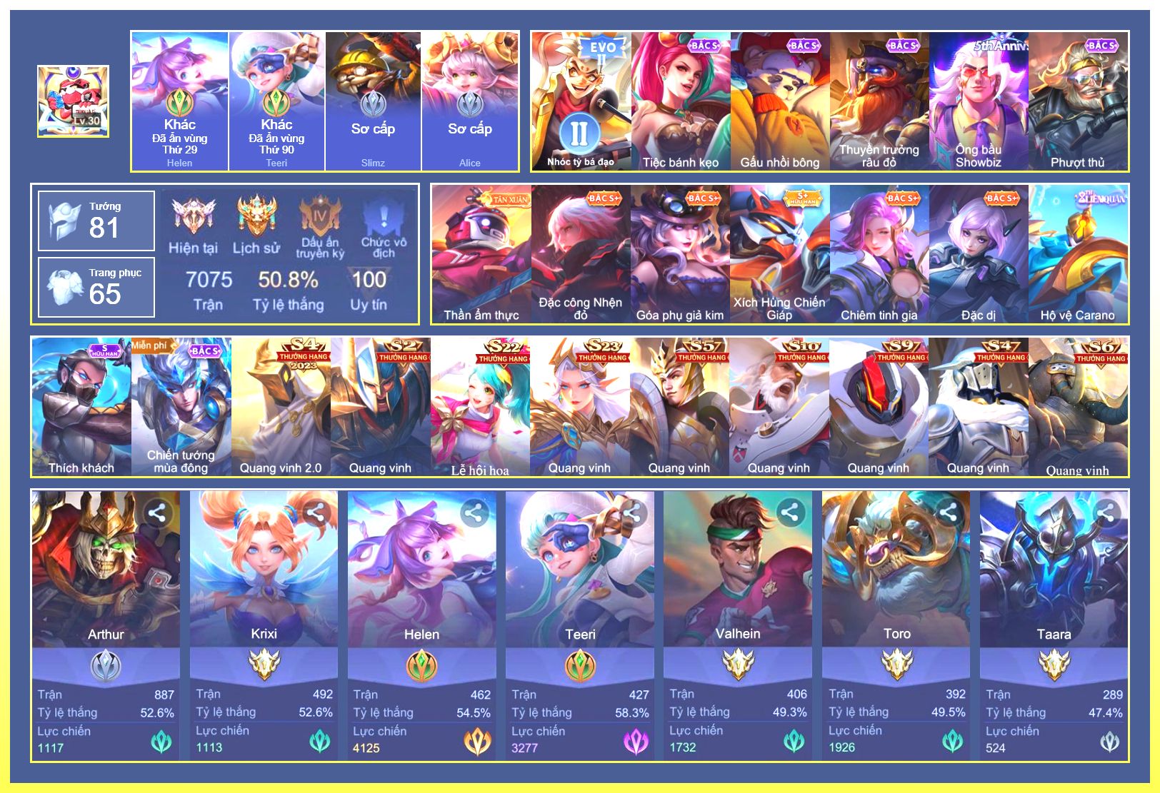Full Tướng.Dư 185K Vàng.Dư 1 Đá Quý...
