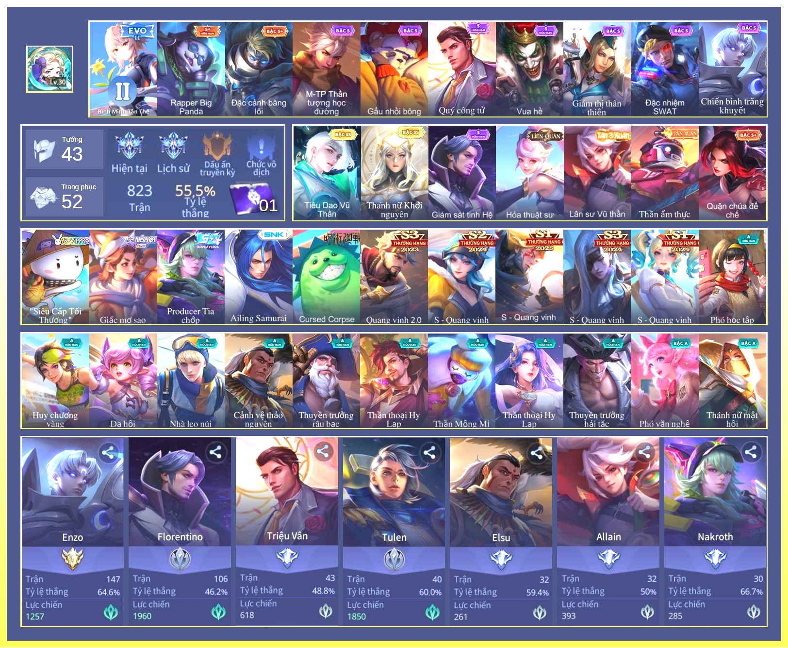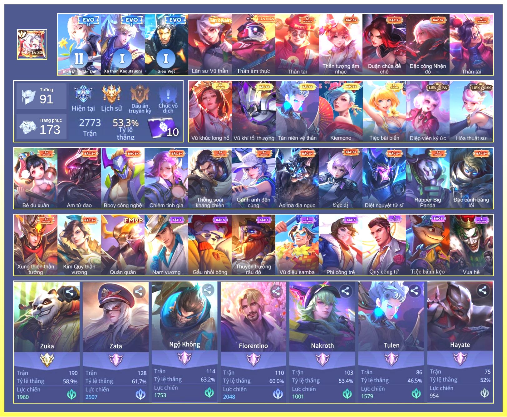 Rất Nhiều Skin Đẹp Vip.Ngọc 90.Dư 9...