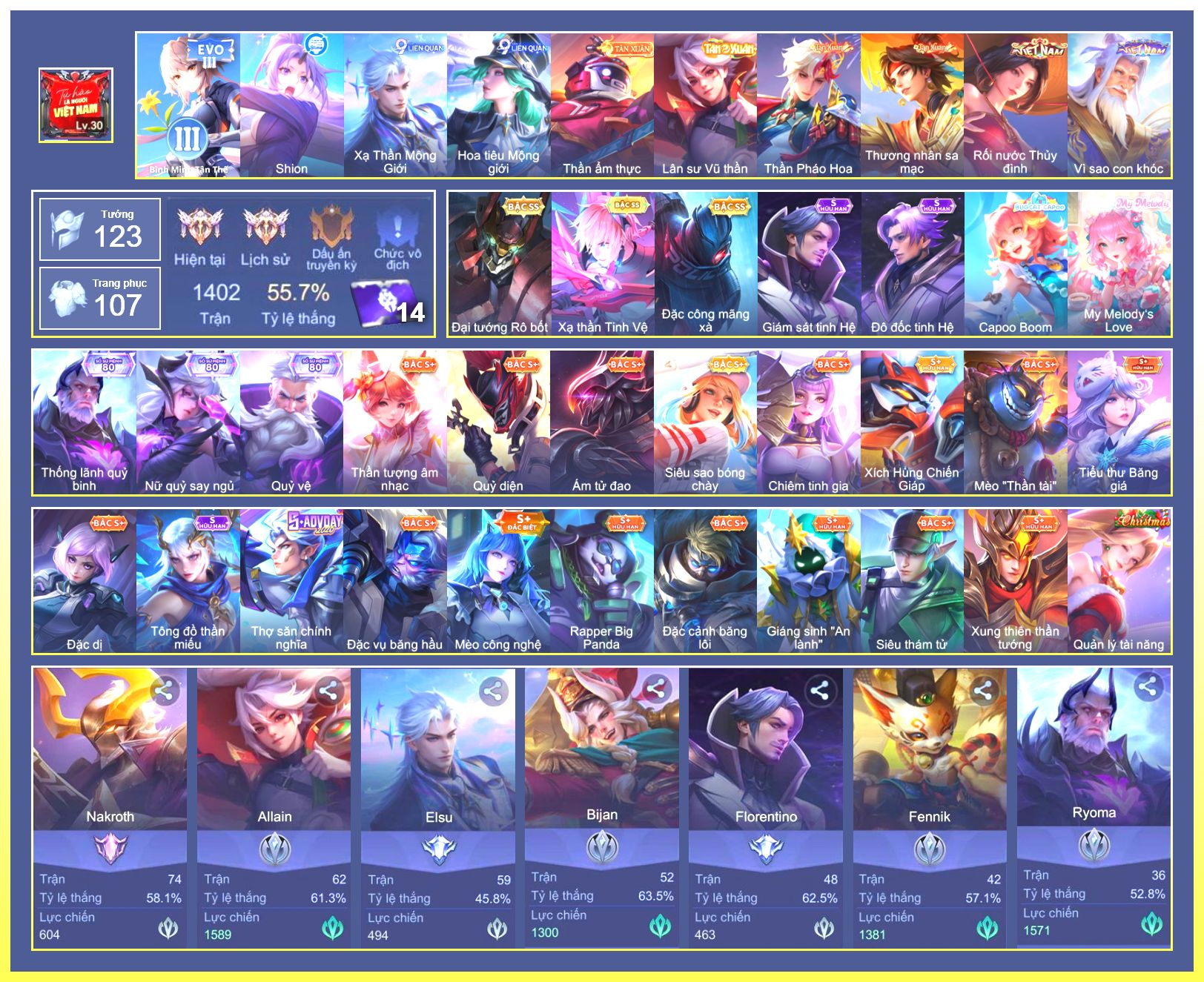 Rất Nhiều Skin Đẹp Vip.Ngọc 90.Dư 6...