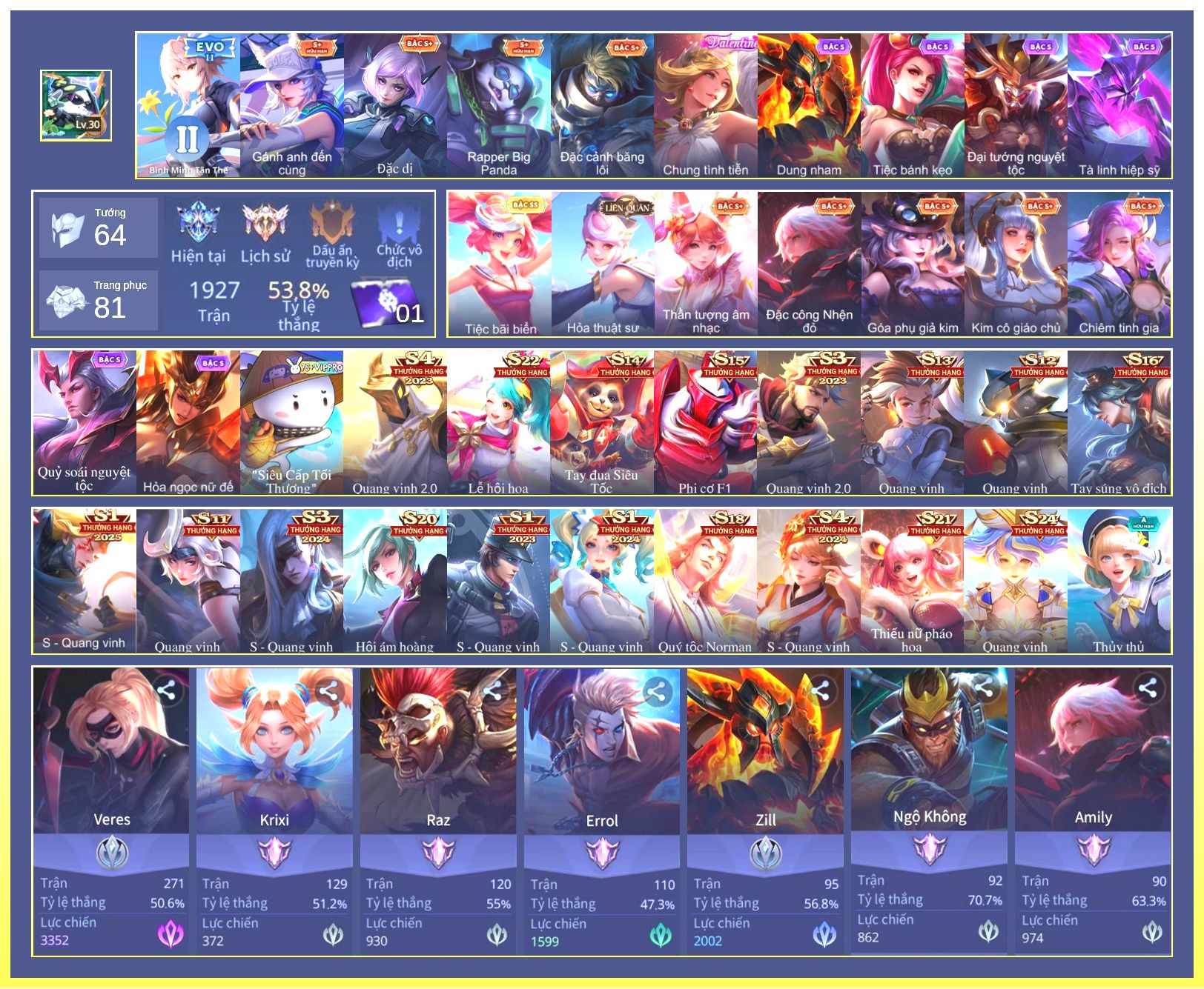 Rất Nhiều Skin Đẹp Vip.Ngọc 90.Dư 4...